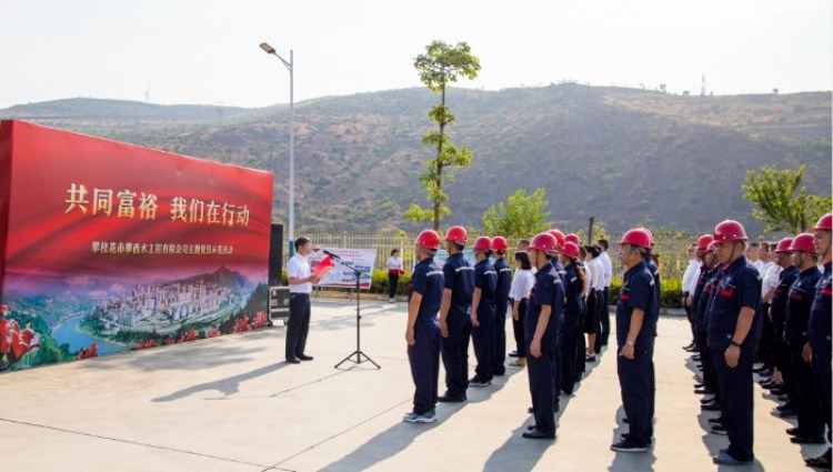 4月26日,集團(tuán)公司攀西水工程有限公司黨支部,在馬店河水廠光伏發(fā)電項(xiàng)目建設(shè)現(xiàn)場(chǎng)組織開(kāi)展了“共同富裕 我們?cè)谛袆?dòng)”主題黨日示范活動(dòng),凝聚拼經(jīng)濟(jì)、搞建設(shè)、抓項(xiàng)目、促發(fā)展的信心和力量,以更加飽滿的精神狀態(tài),為我市“共同富裕”試驗(yàn)區(qū)建設(shè)貢獻(xiàn)力量。