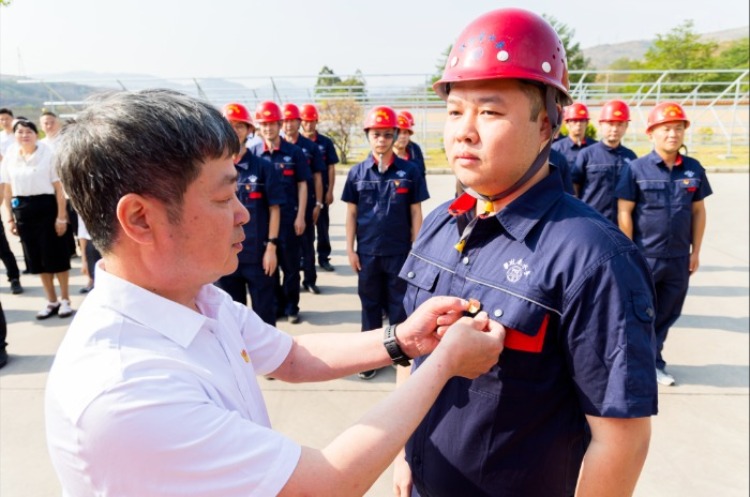 “恭喜你成為一名預(yù)備黨員,希望你再接再厲,干好本職工作,時(shí)刻以共產(chǎn)黨員的標(biāo)準(zhǔn)嚴(yán)格要求自己,在本職工作中發(fā)揮好先鋒模范作用”。攀西水工程公司黨支部書記郭家泉為新黨員況青泉佩戴黨徽,鞭策新黨員不忘初心、牢記使命,自覺(jué)履行黨員義務(wù),聽(tīng)黨話、感黨恩、跟黨走,全心全意為人民服務(wù),矢志不渝為黨奮斗。