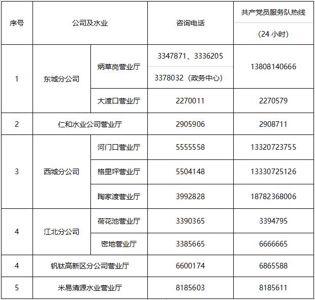 公司及水業(yè)咨詢電話及共產(chǎn)黨員服務(wù)隊電話: